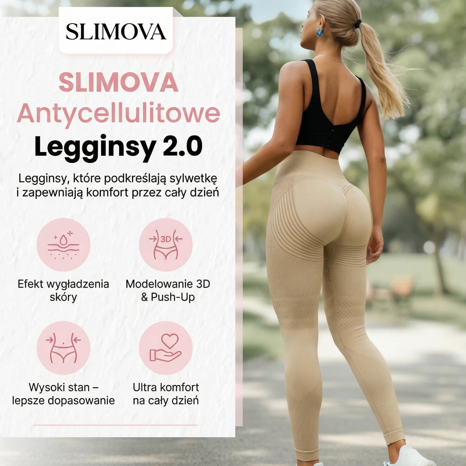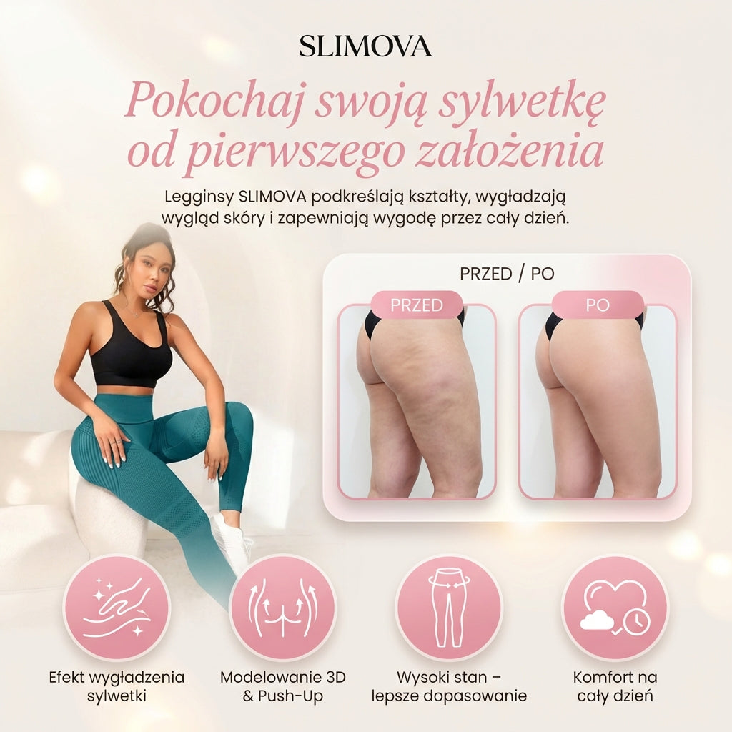 Legginsy SLIMOVA zostały stworzone z myślą o czymś więcej niż tylko wygląd. Specjalna struktura materiału 3D pomaga podkreślić sylwetkę, zapewnia wygodne dopasowanie i komfort noszenia przez cały dzień. Miękkie, elastyczne i oddychające – idealne na trening, spacer i codzienne aktywności, kiedy chcesz wyglądać dobrze i czuć się pewnie.
